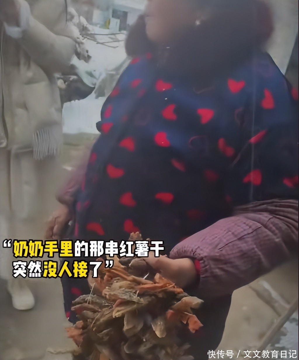 见这些女孩这样,奶奶像个做错事的孩子一样,拿着那串地瓜干,低着头回家了。也正是因为这串地瓜干,惹的全网都在心疼奶奶。